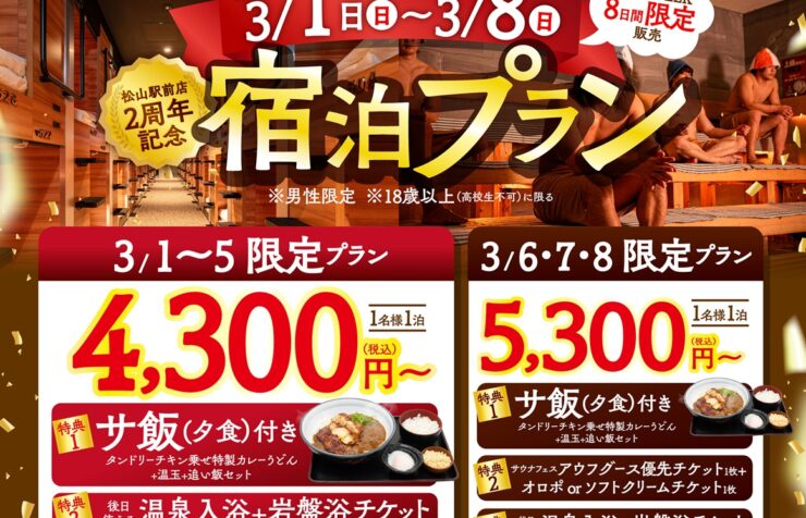 サウナ&スパホテル 松山駅前店のオープン1周年を記念して...