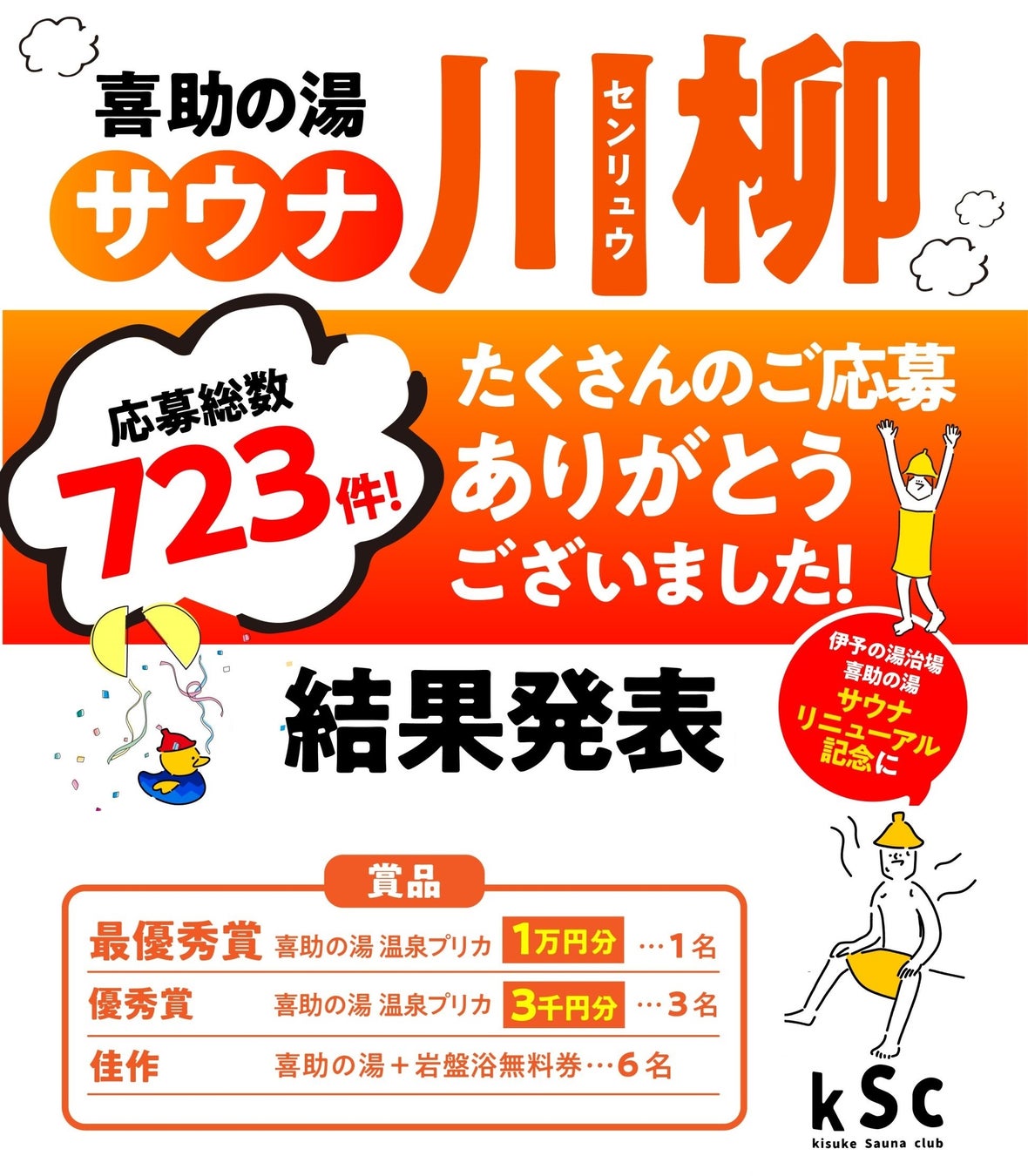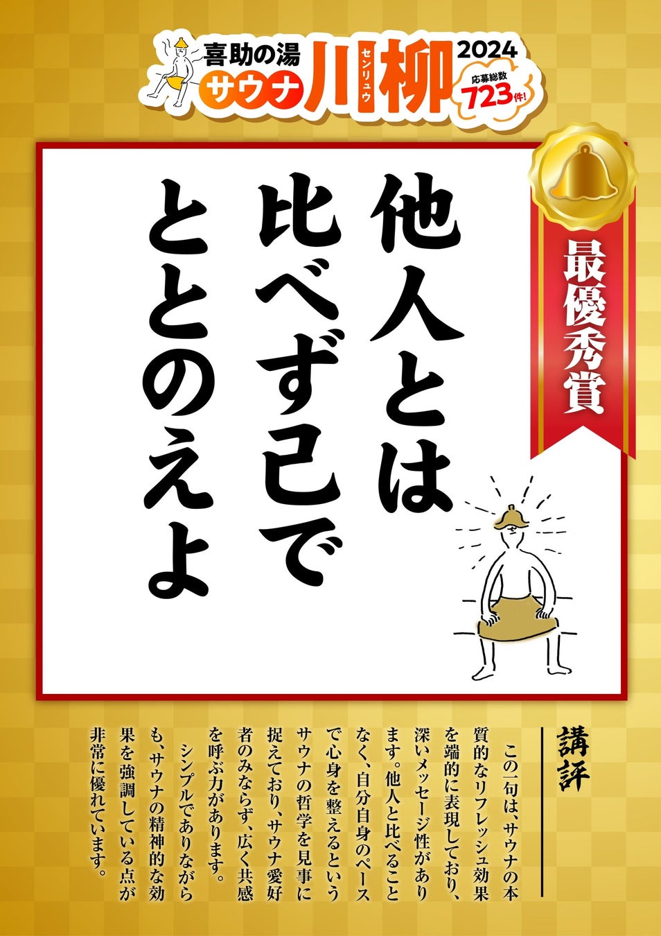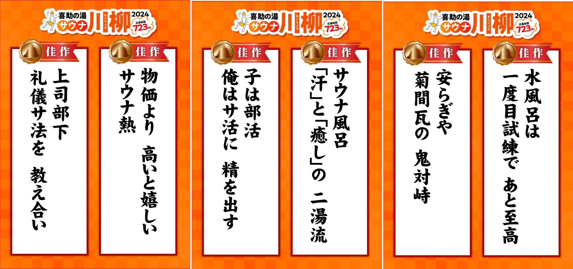全国から応募総数 723句「喜助の湯 サウナ川柳 2024 」入賞作品を発表